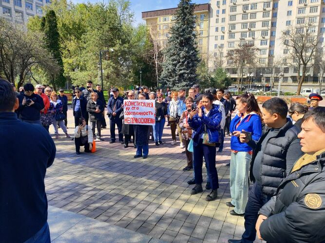 Иш-чара бүгүн, 1-апрелде Горький сейил багында болуп, ага 50-70тей адам чогулду. Алар жаңы кодекстин кабыл алынышына каршы чыгышууда. Алардын ою боюнча, бул азыркы мыйзамдарга жана өлкөнүн Конституциясына каршы келет. Мисал катары «Кыргызстан-1» турак-жай комплексиндеги имараттардын бузулушун мисалга келтиришти.
