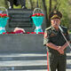 Катышуучулар Чолпонбай Түлөбердиевдин элесин бир мүнөт унчукпай туруу менен эскерип, эстеликке гүл коюшту.