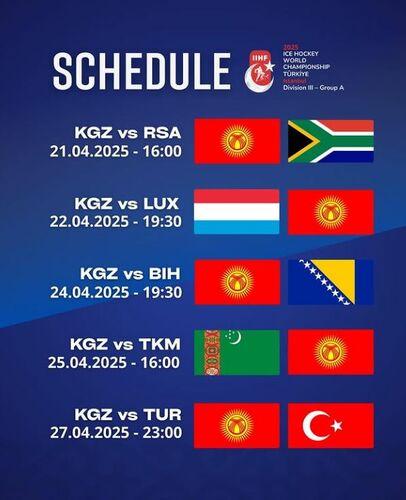 Хоккей боюнча дүйнө чемпионатында Кыргызстандын курама командасы «А» тайпасында үчүнчү күчтүү дивизиондо күч сынашат.Бул тууралуу спорттун бул түрү боюнча федерация социалдык тармактарда билдирди.