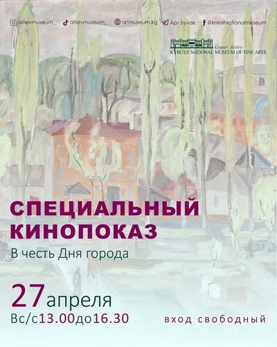 27-апрелде Гапар Айтиев атындагы Кыргыз улуттук көркөм сүрөт музейинде шаар күнүнө карата атайын тасма көрсөтүлөт. Бул тууралуу KNMI Facebook баракчасында маалымдалды.