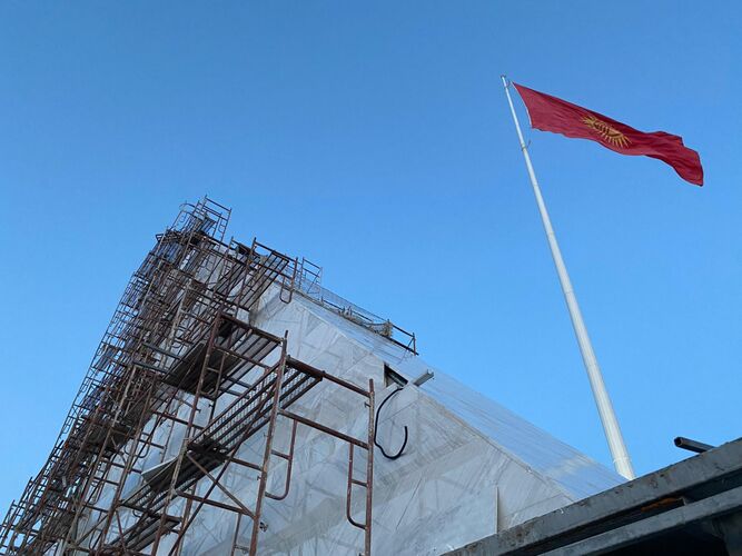 Учурда постаменттин дубалын орнотуп жана жабдуу иштери жүрүп жатканы айтылды.