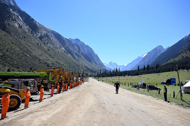 Президент Садыр Жапаровдун сөзүнөн кийин транспорт жана коммуникациялар министри Абсаттар Сыргабаев жардыруу иштерин жүргүзүүгө уруксат сурап, макулдук алгандан кийин унаа жолун курууга даярдык башталды.