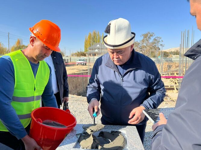 Улуттук коопсуздук боюнча мамлекеттик комитеттин төрагасы Камчыбек Ташиев аймакка болгон жумушчу сапарынын алкагында болочок имараттын пайдубалына убакыт капсуласын салды.