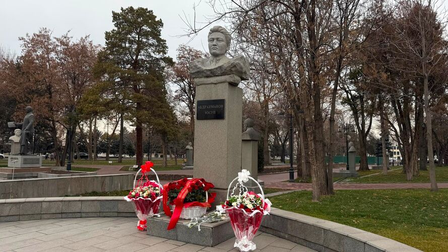 Иш-чаранын алкагында Жусуп Абдрахмановдун монументине гүлчамбар коюлду.