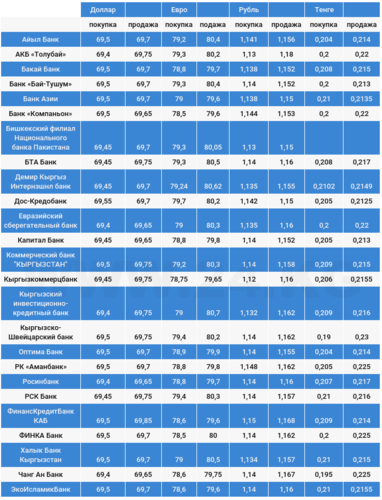 Коммерциялык банктардагы доллардын курсу