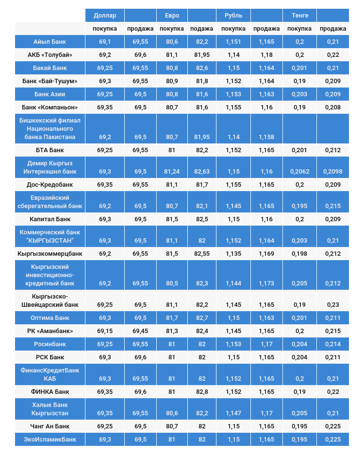 Курс валют в коммерческих банках Кыргызстана на 18 апреля