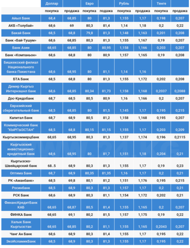 Курс валют в коммерческих банках Кыргызстана на 18 апреля