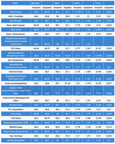 Чет элдик валюталардын коммерциялык банктардагы наркы.
