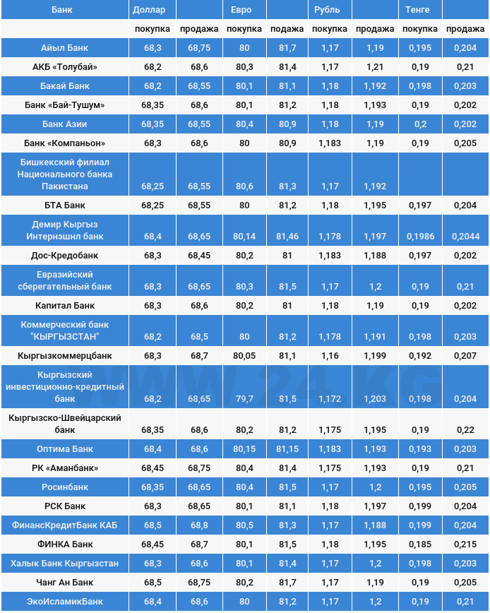 Доллардын коммерциялык банктардагы наркы