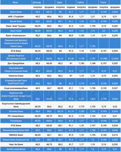 Валюталардын коммерциялык банктардагы наркы