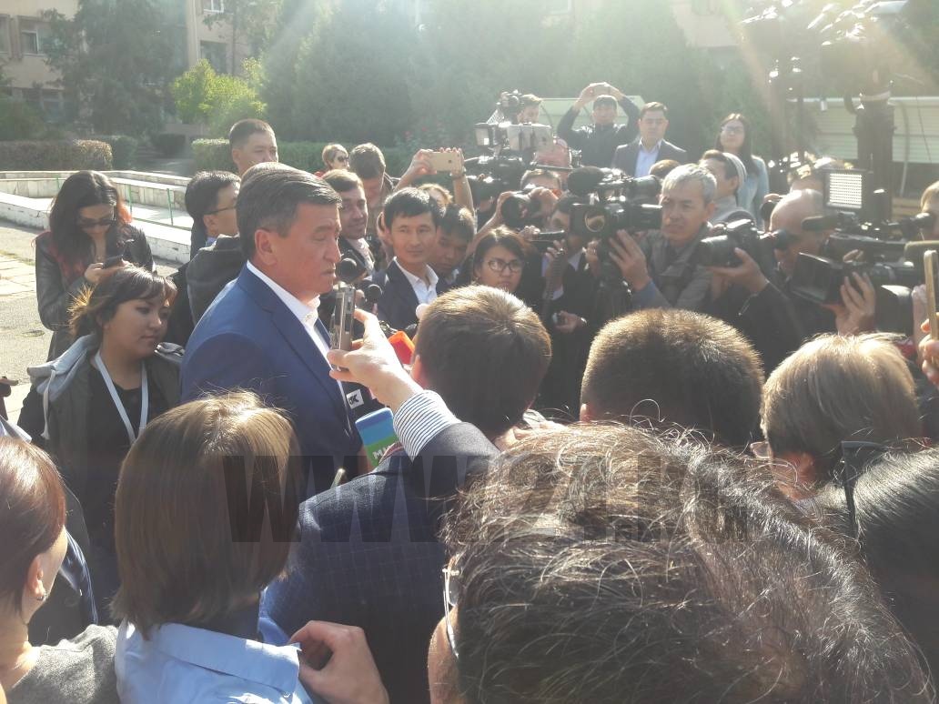 Президенттикке талапкеп Сооронбай Жээнбеков Бишкек шаарындагы № 1327 шайлоо тилкесинде добуш берди. Ал журналисттерге «өлкөдөгү тынчтык, туруктуулук жана реформалардын уланышы үчүн» добушун бергендигин билдирди.