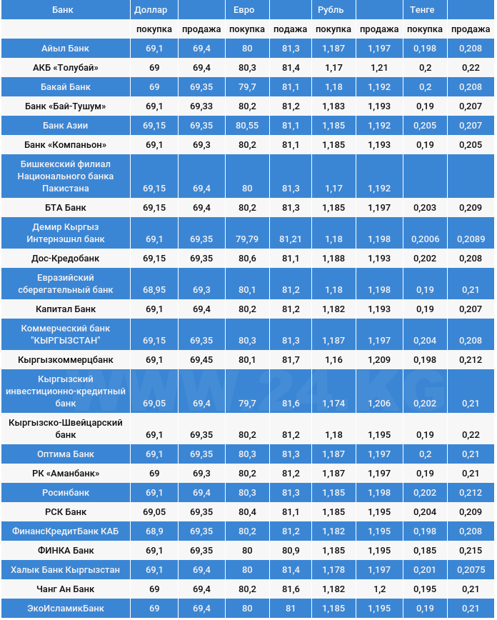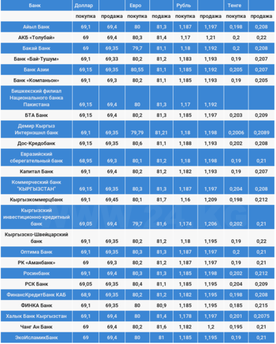 Чет өлкөлүк валюталардын коммерциялык банктардагы наркы.