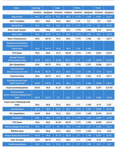 Валюталардын коммерциялык банктардагы наркы.