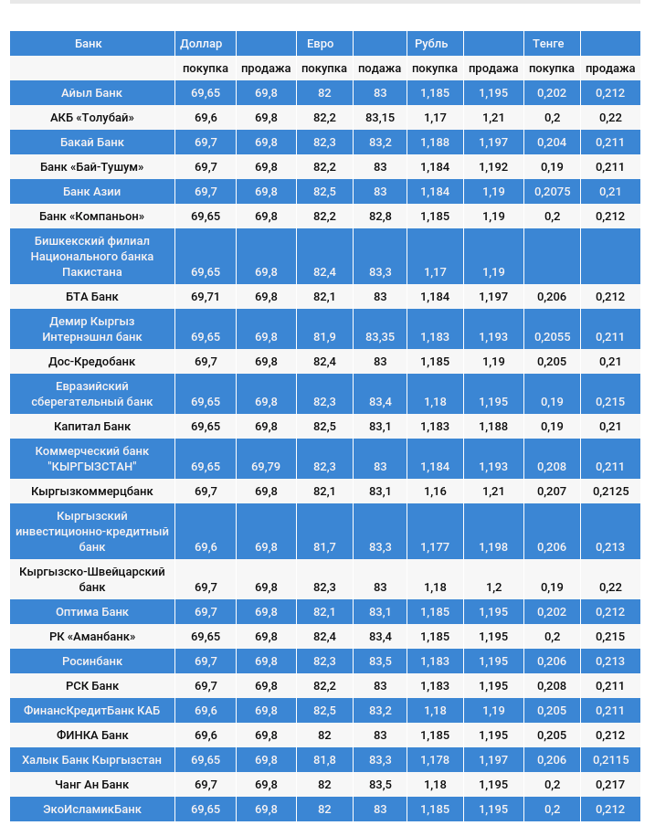 Валюталардын коммерциялык банктардагы наркы