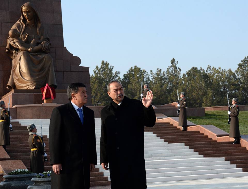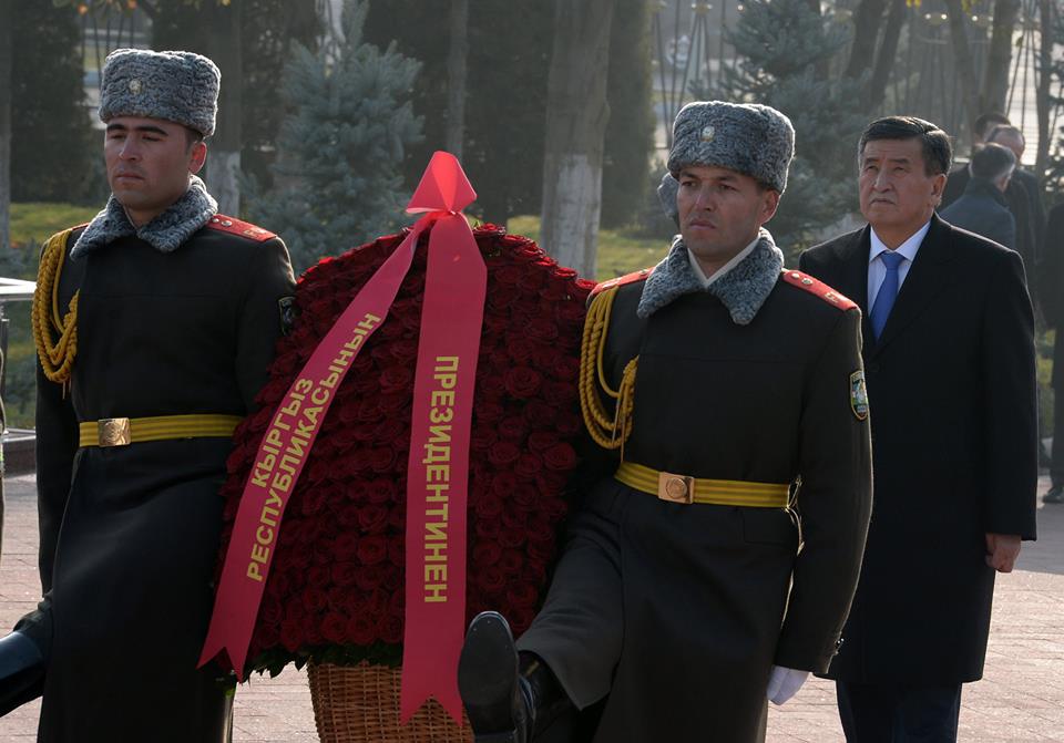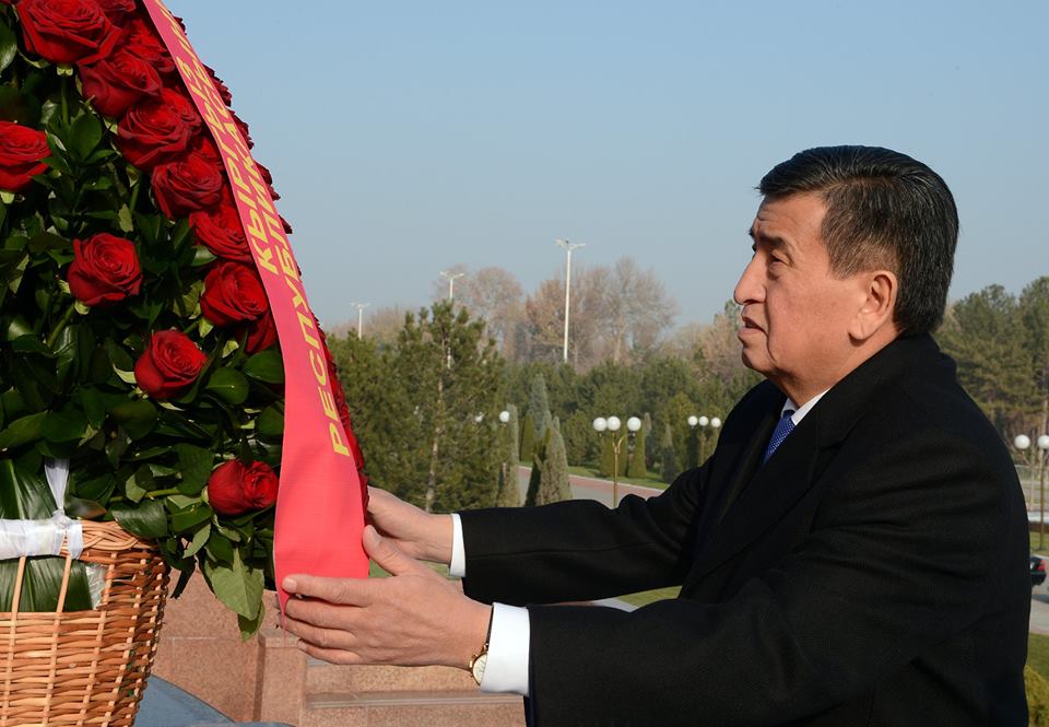 Жээнбеков Мустакиллик аянтындагы Эгемендүүлүк жана гуманизм монументине жана Ислам Каримовдун мемориалдык комплексине гүл койду.