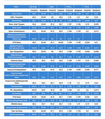 Валюталардын коммерциялык банктардагы наркы