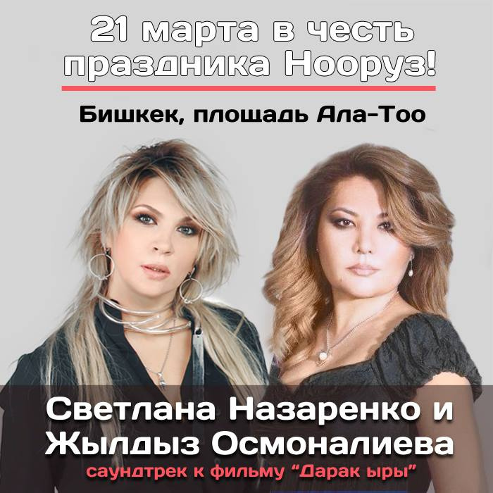 Белгилүү ырчылар Светлана Назаренко менен Жылдыз Осмоналиева Ноорузда «Ала-Тоо» аянтында өткөн концерттик иш-чарада «Дарак ыры» тасмасынын саундтрегин аткарышат. Бул тууралуу «Город312» тобу өздөрүнүн социалдык түйүндөрдөгү баракчасына жазып чыккан.