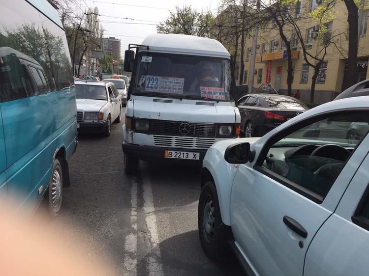 Бишкекте жүргүнчүлөрдү ташуучу № 223- кичи автобус жол кырсыгына кабылды. Бул тууралуу окуяга күбө болгондор билдирди.