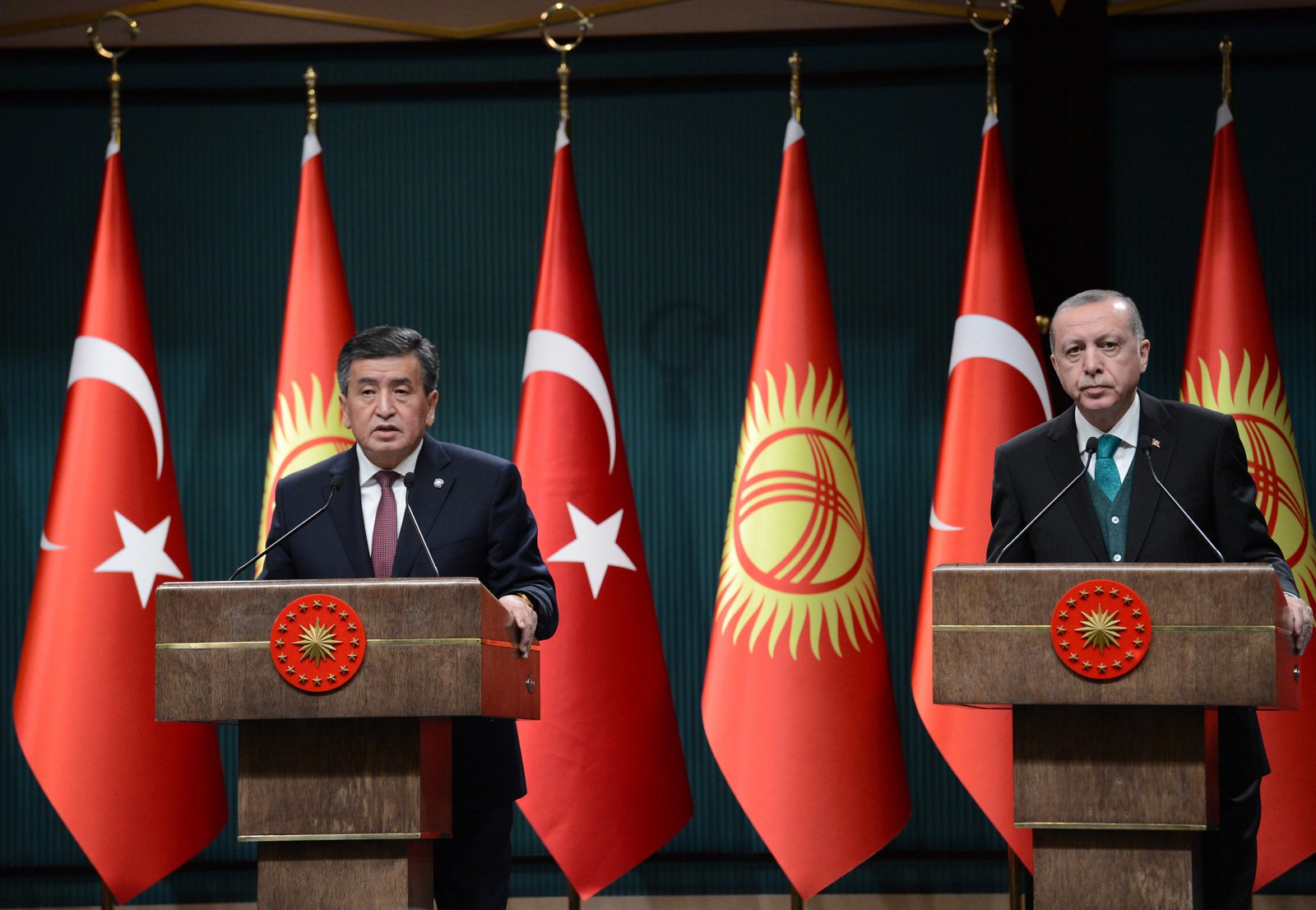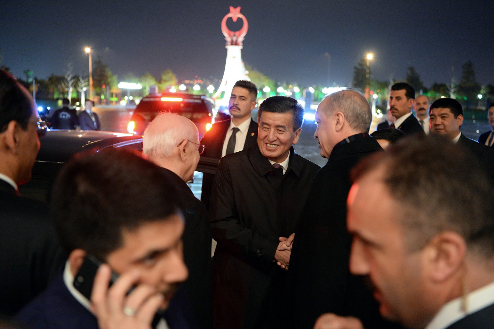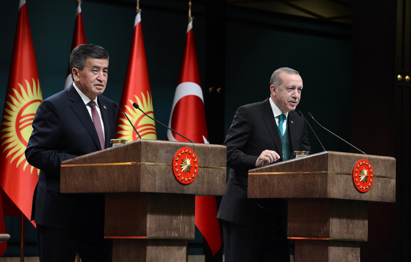 Кыргызстандын президентин жылуу тосуп алып, Реджеп Тайип Эрдоган Түркия Кыргызстандын демократиялык өнүгүүсүн ар дайым колдоп келгендигин белгилеп, эки өлкөнүн мамилелери мындан ары дагы чыңдалаарына ишенимин билдирди.