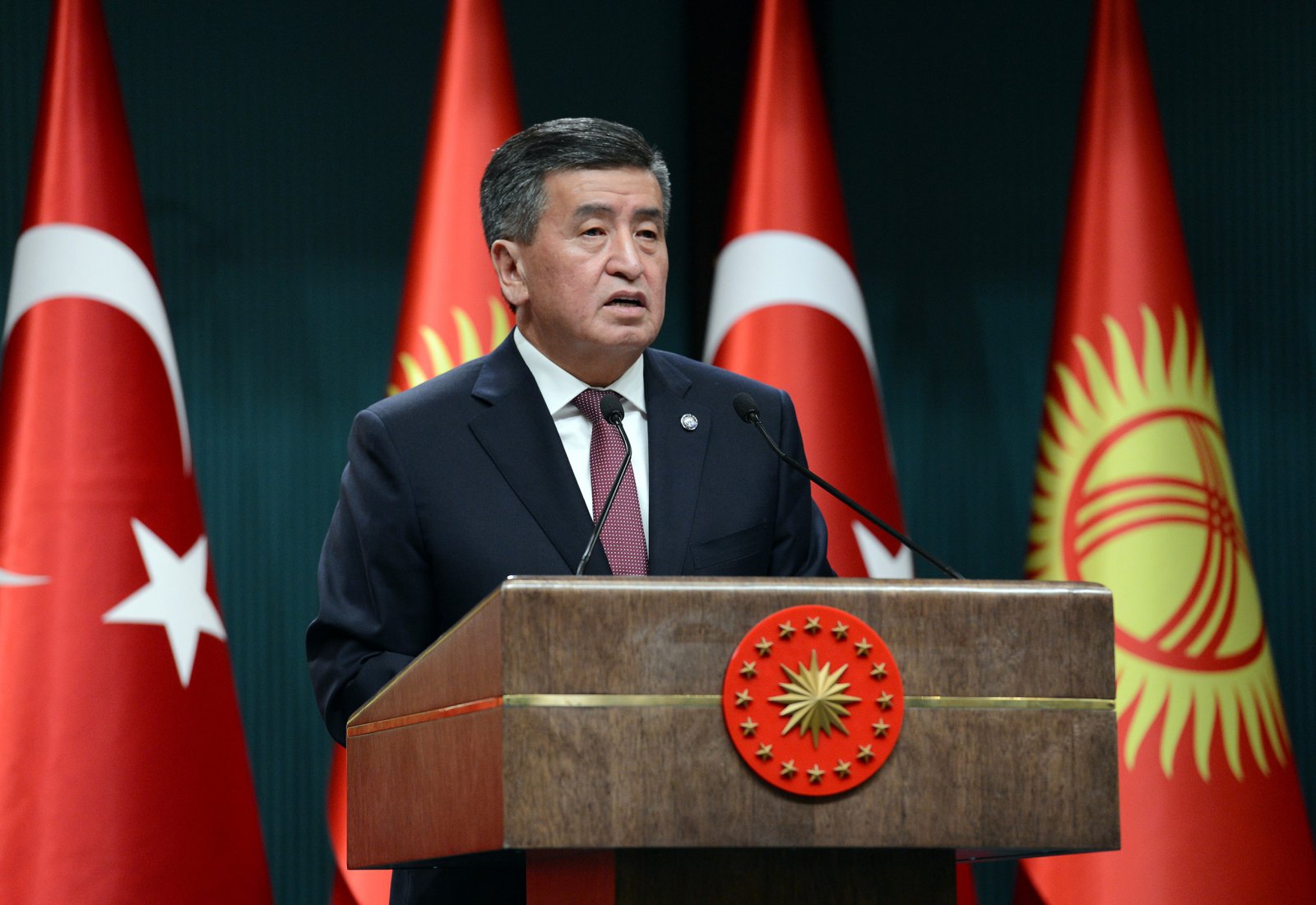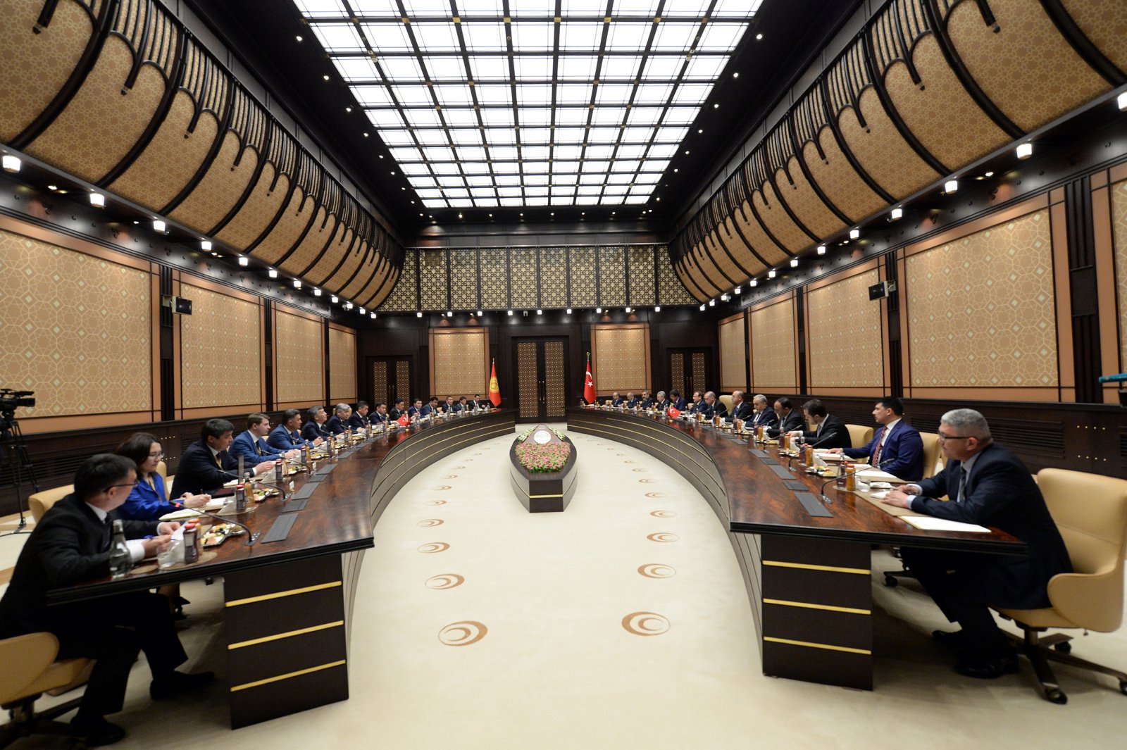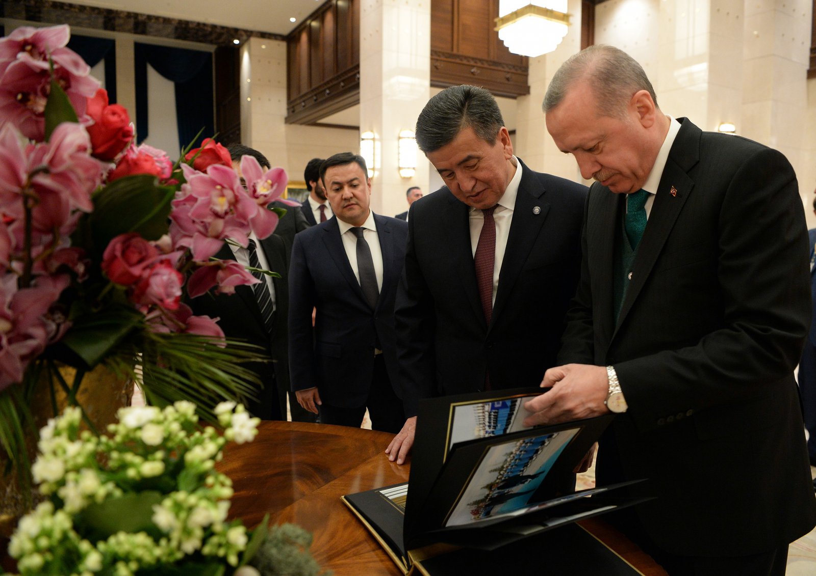 Кыргызстандын президентин жылуу тосуп алып, Реджеп Тайип Эрдоган Түркия Кыргызстандын демократиялык өнүгүүсүн ар дайым колдоп келгендигин белгилеп, эки өлкөнүн мамилелери мындан ары дагы чыңдалаарына ишенимин билдирди.