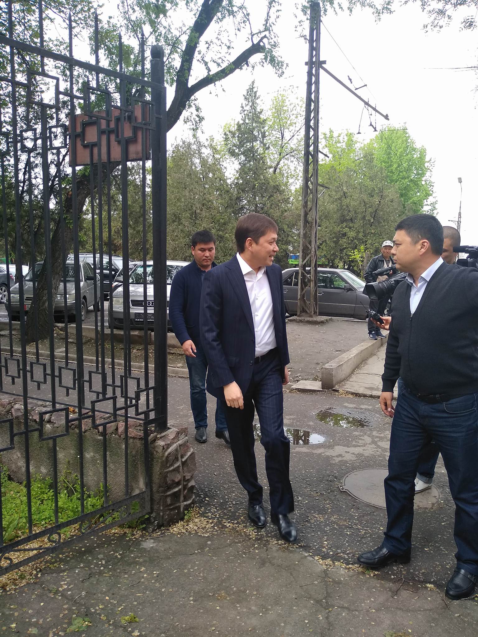 Сапар Исаков саат 15.00дөн кечикпей келип, УКМКнын имаратына кирип кетти. Ал журналисттерге сурактан кийин маалымат берүүнү убадалады.