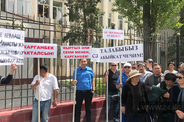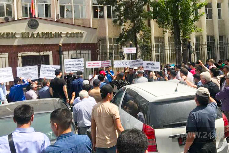 Мурдагы депутат Карганбек Самаковдун тарапташтарды шаардык соттун алдына митингге чыгышты.