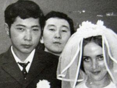 Сүрөт мамлекет башчысы Сооронбай Жээнбеков менен жубайы Айгүл Токоева баш кошкон күнү тартылган.