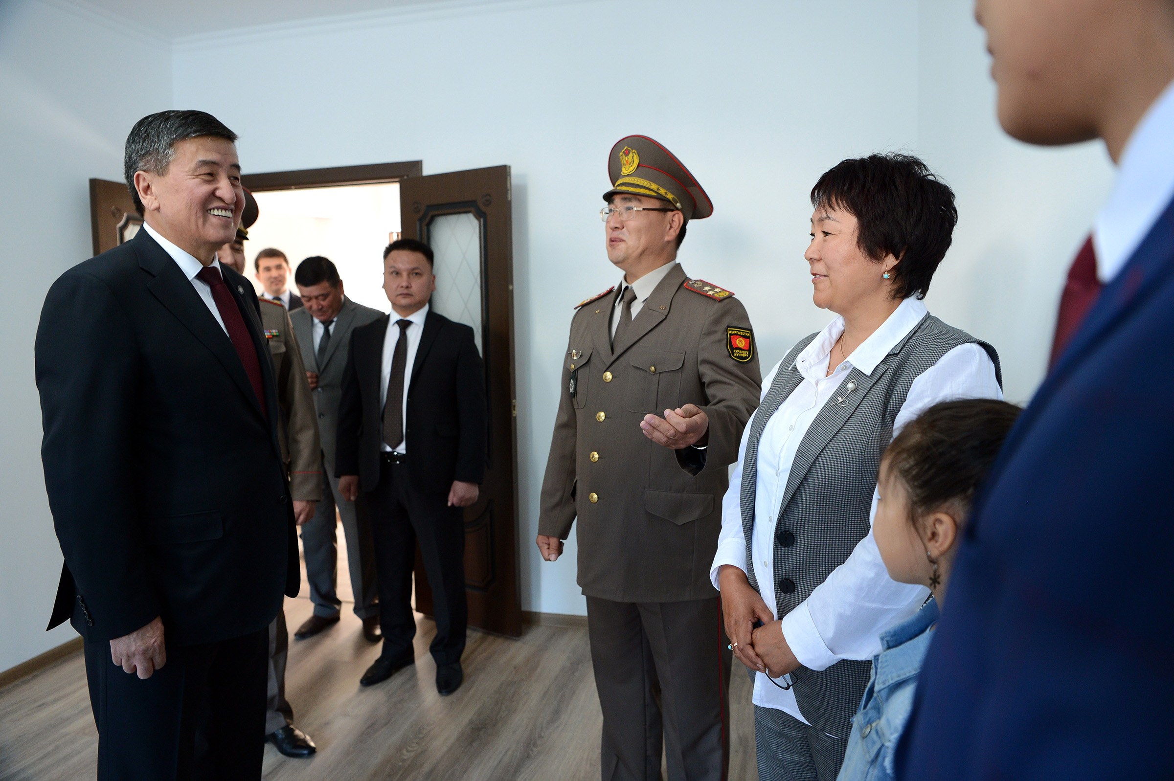 Президент Сооронбай Жээнбеков Куралдуу күчтөрдүн 54 кызматкерине жаңы батирдин ачкычтарын тапшырды. Бул тууралуу президенттин аппаратынын басма сөз кызматы билдирди.