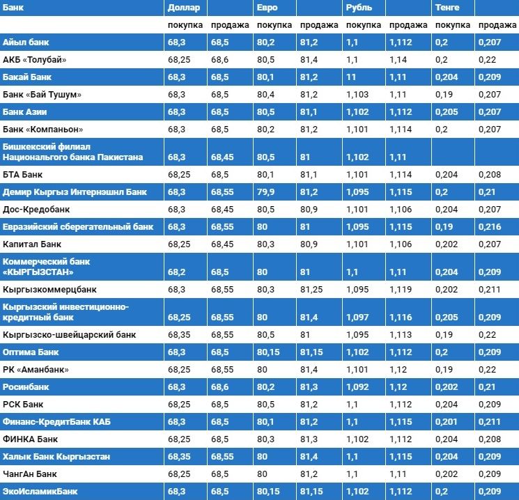 Валюталардын коммерциялык банктардагы бүгүнкү наркы