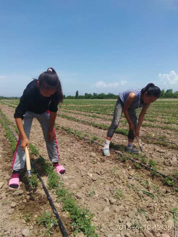 Айгүл менен Асел мектеп окуучулары. Алар жайкы эс алуу күндөрүн бош өткөрбөй ата-энелерине жардам берүүнү чечишкен. Күндүн ысыгына карабай ачык талаада чоңдор менен теңтайлаша иштеп жатышат. Алардын катарында 1-курстун студенти Мээрим Өмүркул кызы үч жылдан бери келип иштейт.