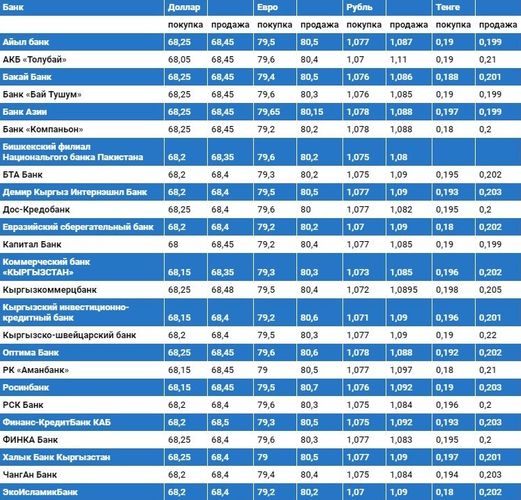 Валюталардын коммерциялык банктардагы бүгүнкү наркы