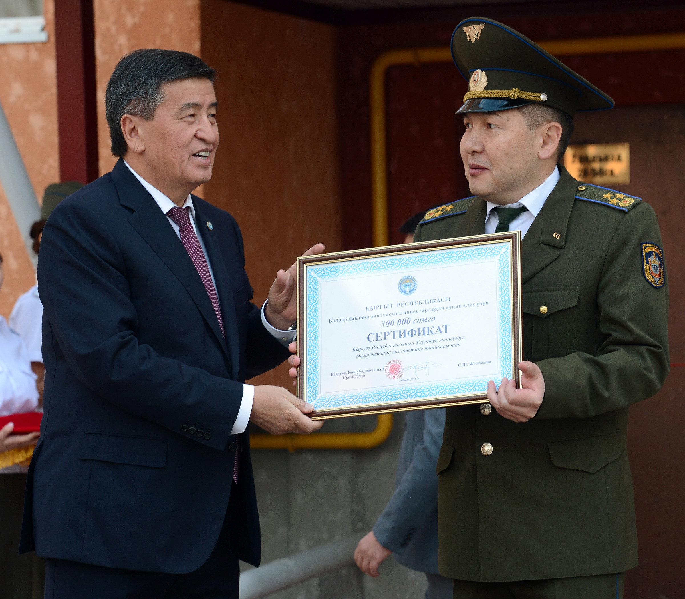 Өз сөзүндө Мамлекет башчысы Кыргызстан үчүн улуу майрам Эгемендүүлүк күнүнүн алдында бул жакшылыкка ортоктош болуп жатканына кубанычта экенин билдирди. Ал Куралдуу Күчтөрдүн аскер кызматчыларына жана укук коргоо органдарынын кызматкерлерине социалдык жактан колдоо көрсөтүү уланып жатканын белгиледи.