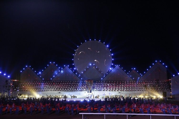 III Бүткүл дүйнөлүк көчмөндөр оюндарынын салтанаттуу ачылыш аземи болуп өттү. Ага Кыргызстандын президенти Сооронбай Жээнбеков, Казакстандын президенти Нурсултан Назарбаев, Түркиянын президенти Режеп Тайип Эрдоган, Татарстандын президенти Рустам Минниханов, Эмир Эль-Фуджейры Мохамед бин Хамад бин Мохамед Аль Шарки жана Кыргызстан менен Түркиянын биринчи канайымдары катышты.