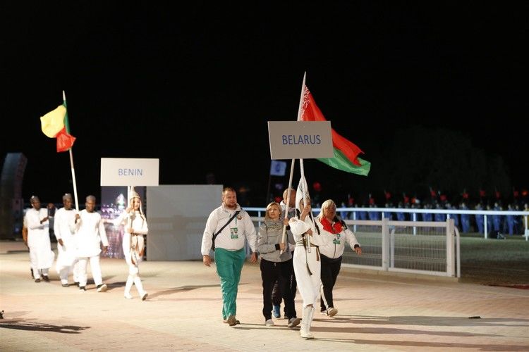 Ачылыш аземдин соңунда көчмөндөр оюндарынын катышуучуларынын жөө жүрүшү болду. Анда 82 өлкөдөн 2 миң 500гө жакын спортчу катышты. Алгачкы көчмөндөр оюндарына 19 мамлекеттен 800 спортчу, кийинки иш-чарага 62 өлкөдөн 1 миң 200 киши катышкан.