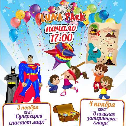 В эти выходные детей ждут квесты «Супергерои спасают мир!» и «В поисках затерянного клада». Им понадобится все их знания и мужество, чтобы пройти все испытания.