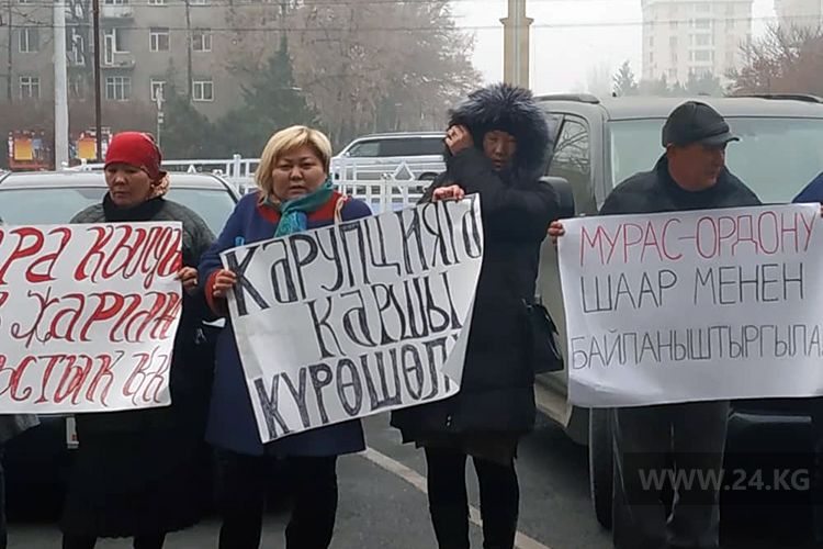 У мэрии Бишкека митингуют жители столичного жилмассива «Мурас-Ордо». Они требуют открыть новый маршрут общественного транспорта.