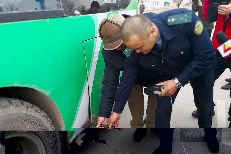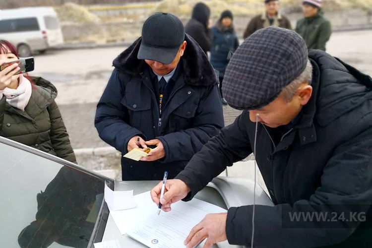 Сотрудники ГУОБДД останавливают маршрутку. Инспектор вставляет в выхлопную трубу дымомер и просит водителя нажать на газ. Из трубы повалил черный дым. И вновь, по данным датчика, превышение дымности 40 процентов.Водителю выписывают административный штраф в 1 тысячу сомов. Руководителя фирмы-перевозчика могут оштрафовать на сумму до 2 тысяч сомов.