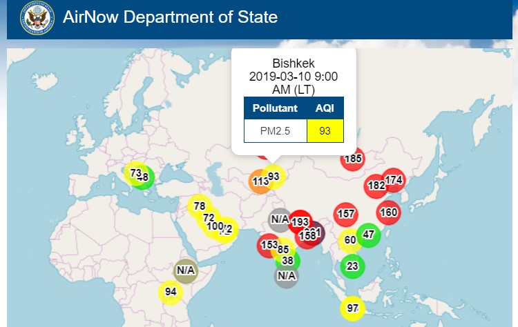 Посольство США в Кыргызстане также установило датчик, измеряющий уровень загрязнения воздуха. Информация обновляется ежечасно.