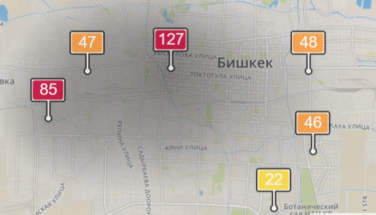 Состояние воздуха в Бишкеке вызывает обеспокоенность экологов и горожан. MoveGreen и активист из Алматы Павел Александров собрали для столицы датчики, фиксирующие загрязнение воздуха, и привязали их к карте.