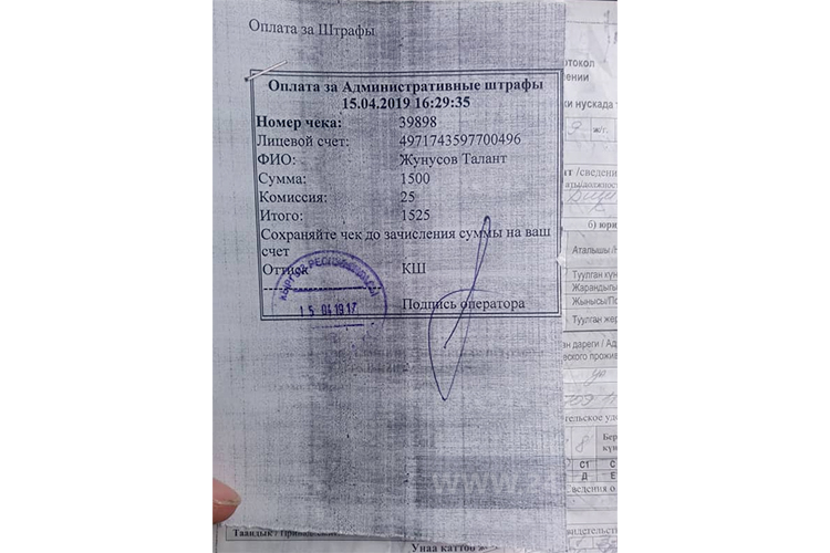 В «Веге» информацию подтвердили. Нарушителя оштрафовали на 3 тысячи сомов. Он оплатил штраф с 50-процентной скидкой.