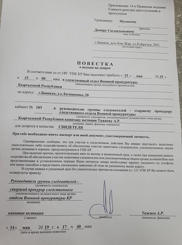 По ее словам, сегодня он получил повестку, где указано, что он должен явиться в 15.00 в качестве свидетеля.