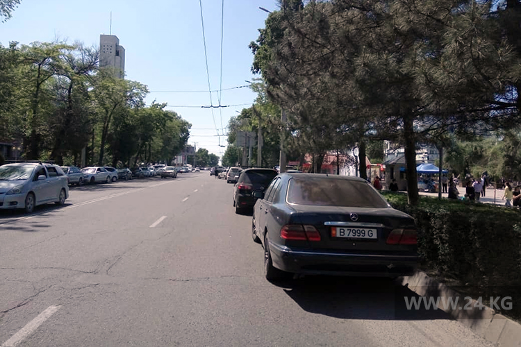 На пересечении проспекта Чуй и улицы Шопокова, как всегда, сложно разъехаться из-за припаркованных авто. Часть дороги занимает платная парковка. Оставшиеся свободные места занимают нарушители. Несмотря на то что с 14 мая на перекрестке заработали камеры, машины паркуют прямо под ними.