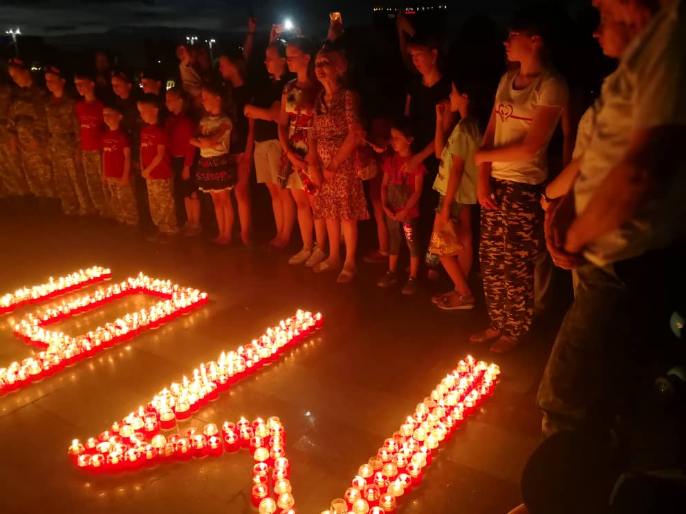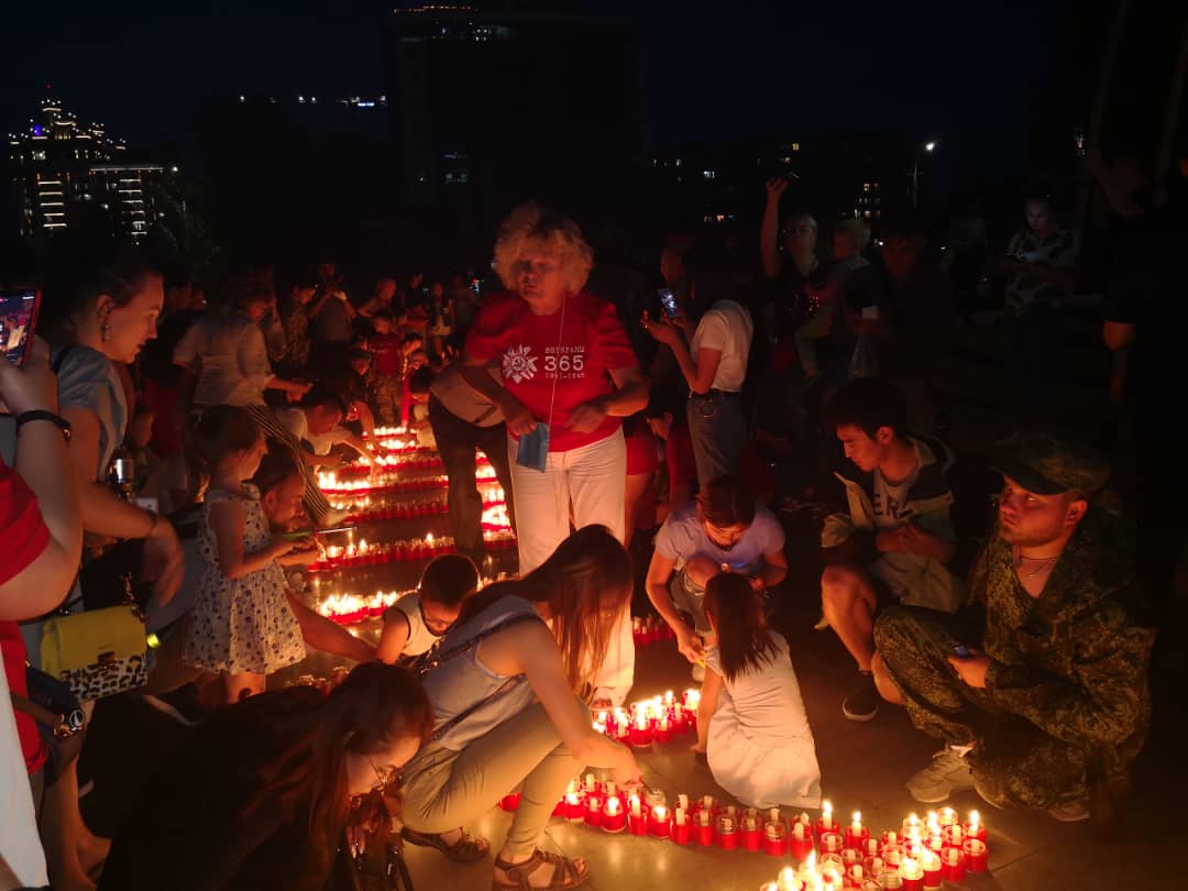 После того как все свечи зажгли, участники акции помянули всех погибших минутой молчания. Каждому было о ком вспомнить.