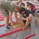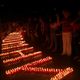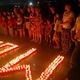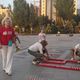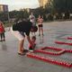 Волонтеры сначала начертили мелом трафарет, а потом ставили баночки со свечами, тщательно выравнивая каждую линию.