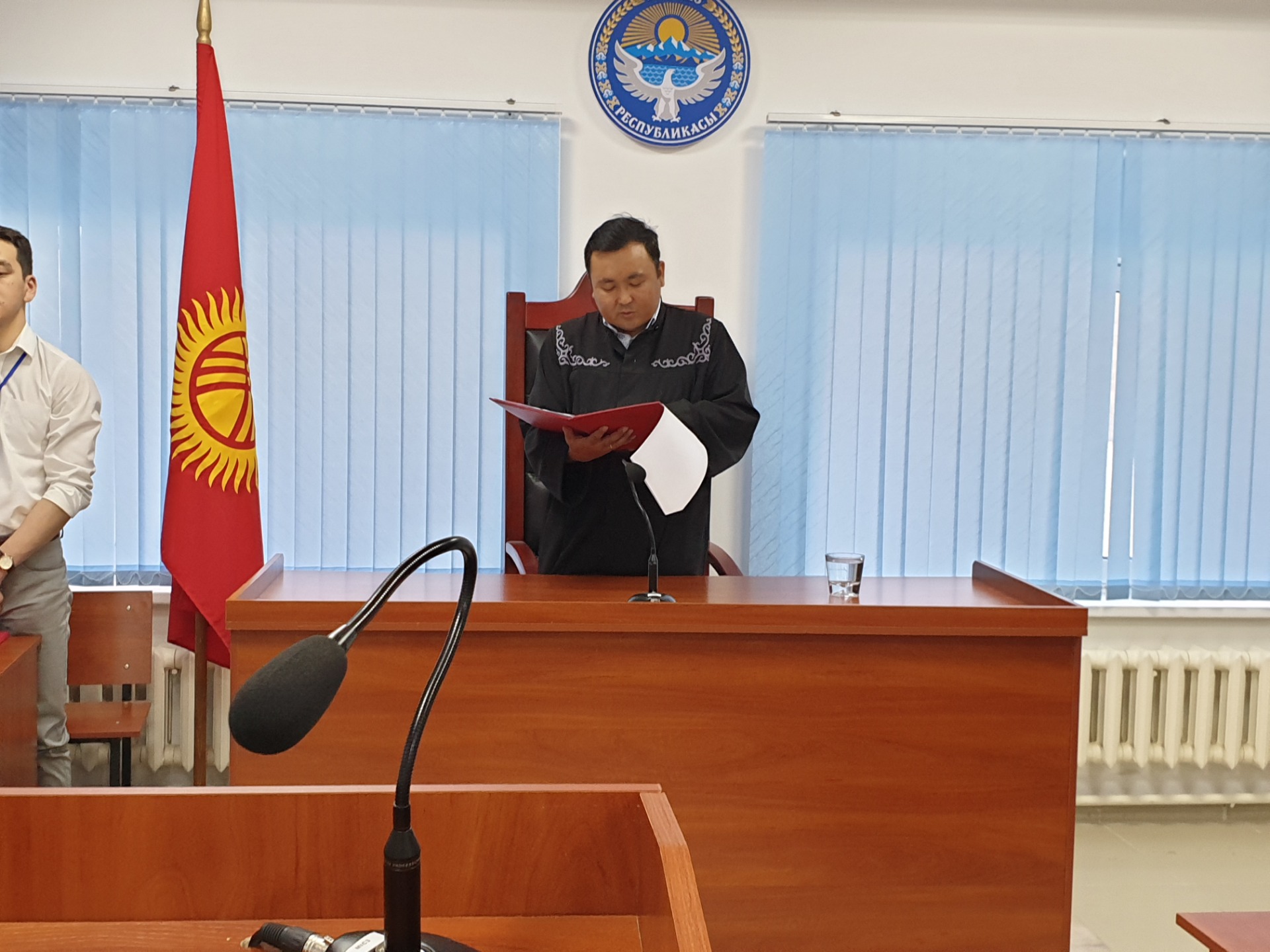 Выйдя из совещательной комнаты, судья Мирлан Термечиков вынес приговор, согласно которому Молдомуса Конгантиев оправдан за отсутствием состава преступления.