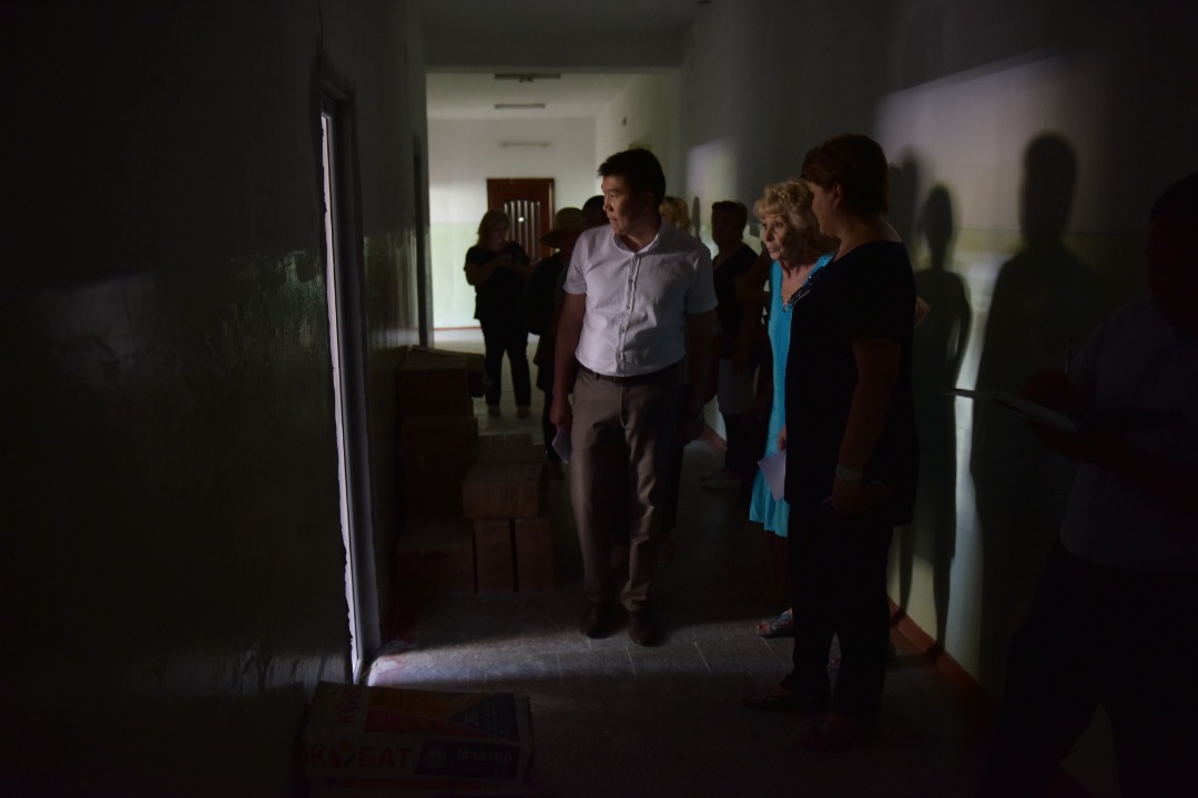 Нарекания комиссии вызвали туалеты в школе № 56. А именно проходы. Вице-мэр Уланбек Азыгалиев распорядился расширить проемы и все переделать. Инспектирующих чиновников смутили также почти панорамные окна. Хорошо еще, что не напротив отхожего места. Но решили первым делом поручить строителям заняться дверями. «Нужно все переделать. Подрядная организация не доглядела. Получается, что они установили пластиковые коробки в существующий проем, и в итоге он сократился. До 15 августа подрядчики должны все переделать. Мы приедем еще раз. Не успеют, будем лишать их лицензии», — пообещал Уланбек Азыгалиев.