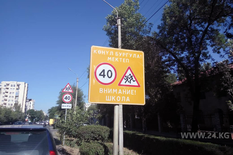 К примеру, по трассе Бишкек – Кара-Балта возле каждой школы установлены такие знаки. За ними частенько стоят инспекторы и ловят нарушителей за превышение скорости.