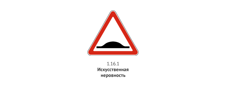 На этом участке следует установить знак 1.16.1 «Искусственная неровность» – участок дороги с искусственной неровностью для принудительного снижения скорости. Устанавливается на дорогах вблизи школ, детских садов.