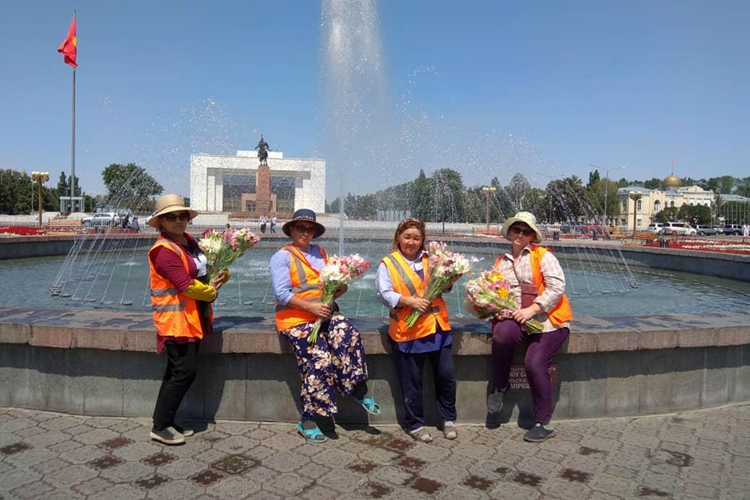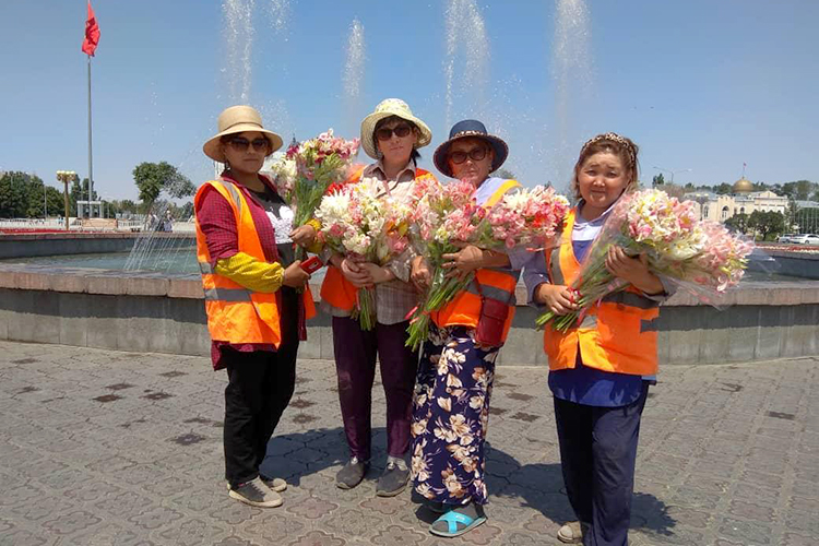 Бишкекчанин Евгений Николаев дарит сотрудницам «Тазалыка» букеты цветов в знак благодарности за работу. Об этом сообщили в пресс-службе мэрии.