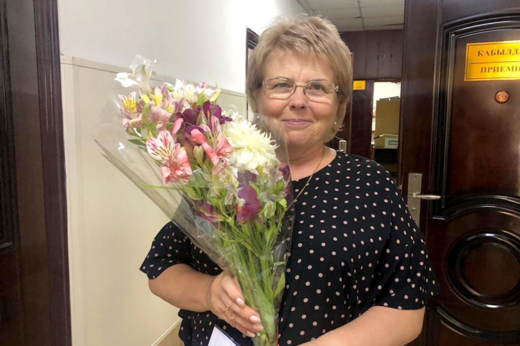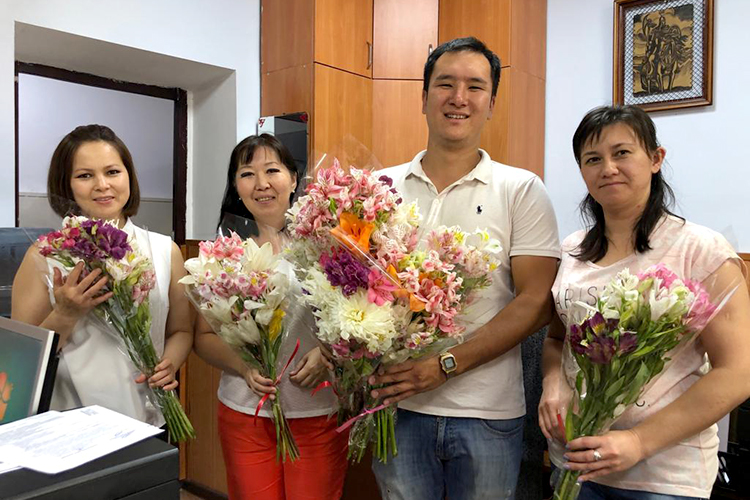 Ранее букеты Евгений Николаев вручил сотрудницам Бишкекводоканала.